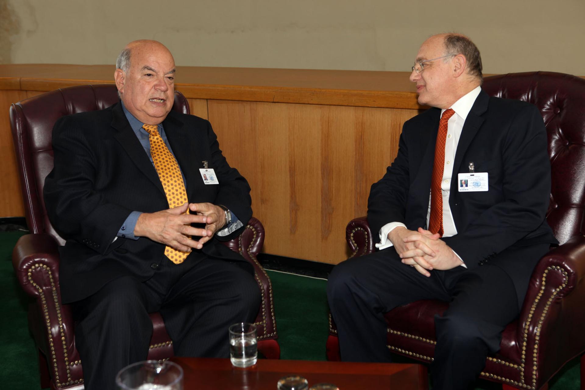 Naciones Unidas, Septiembre 21 de 2010. Canciller Héctor Timerman mantuvo un encuentro bilateral con el Secretario Gral. de la OEA, José Miguel Insulza. prensa cancilleria