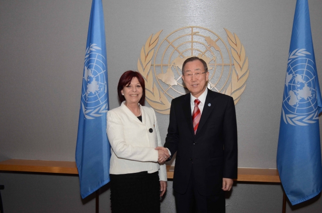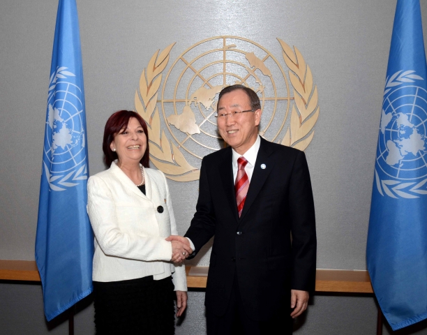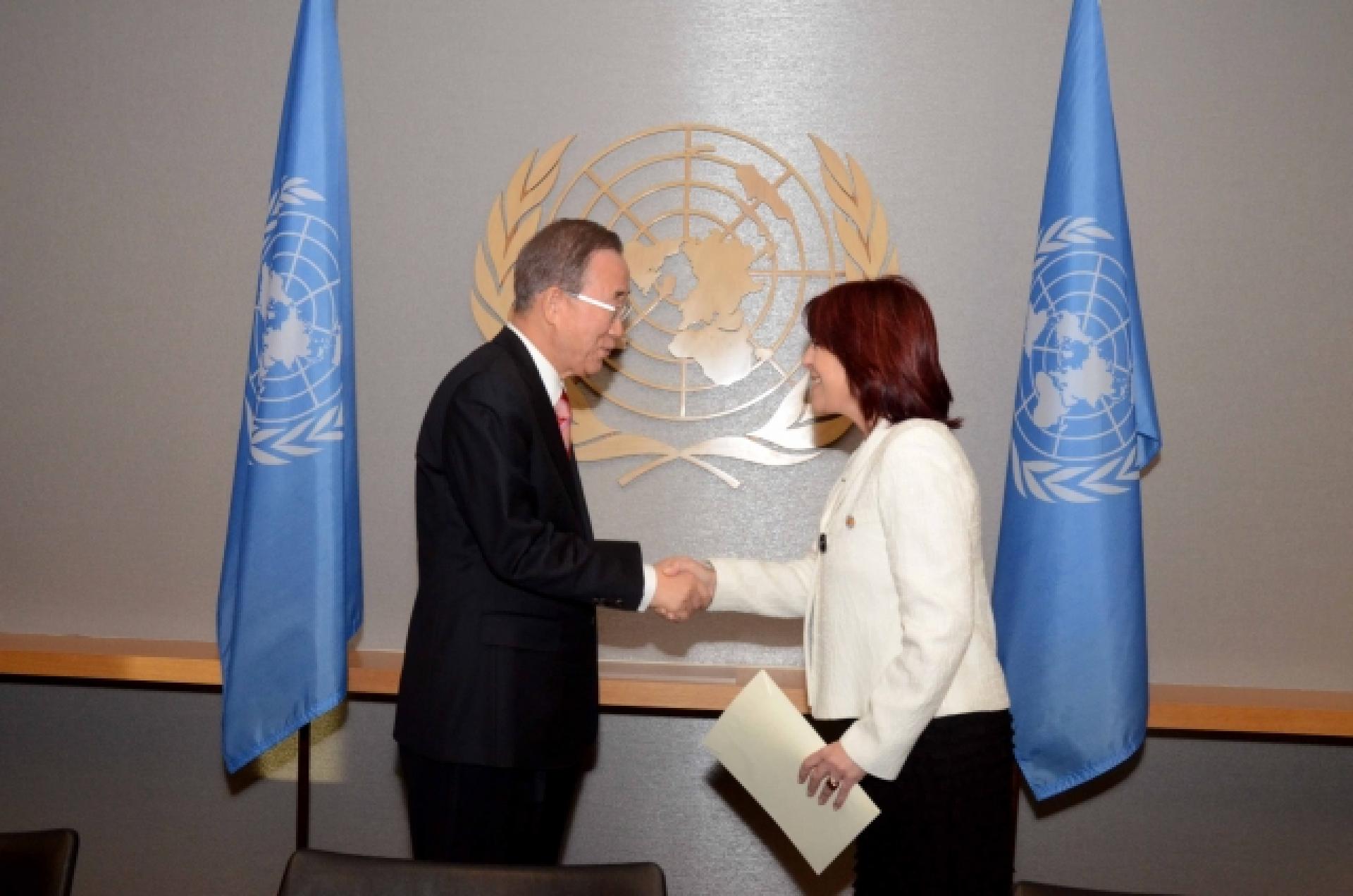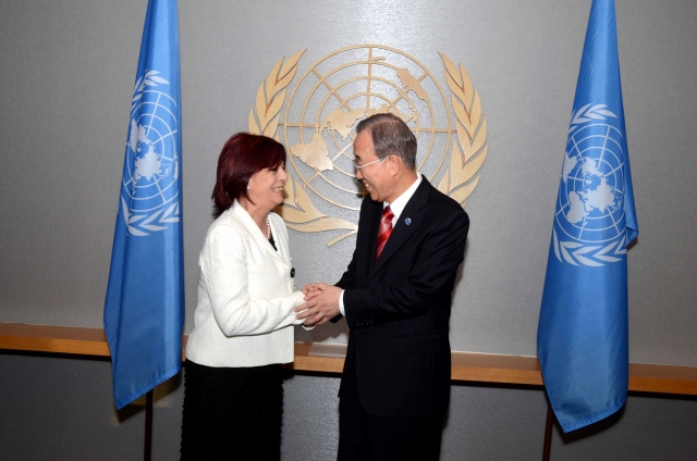 Nueva York, 23 de septiembre de 2012, el Secretario General de las Naciones Unidas, Ban Ki-moon, recibió las cartas de credenciales de la Embajadora María Cristina Perceval como Representante Permanente de la República Argentina ante las Naciones Unidas