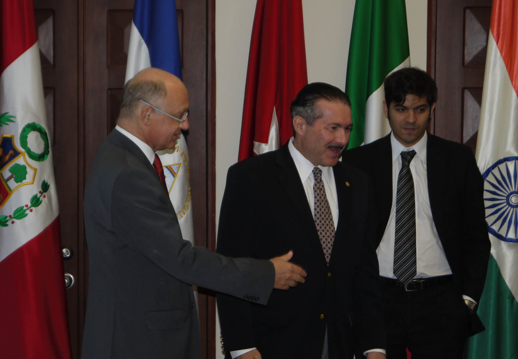 Panamá, Enero 16 de 2012. El Canciller Héctor Timerman es recibido por su par Roberto Henríquez, con quién repasó la agenda bilateral, en el primer día de la gira latinoamericana que llevará al Jefe de las Relaciones Exteriores de Argentina a varios país