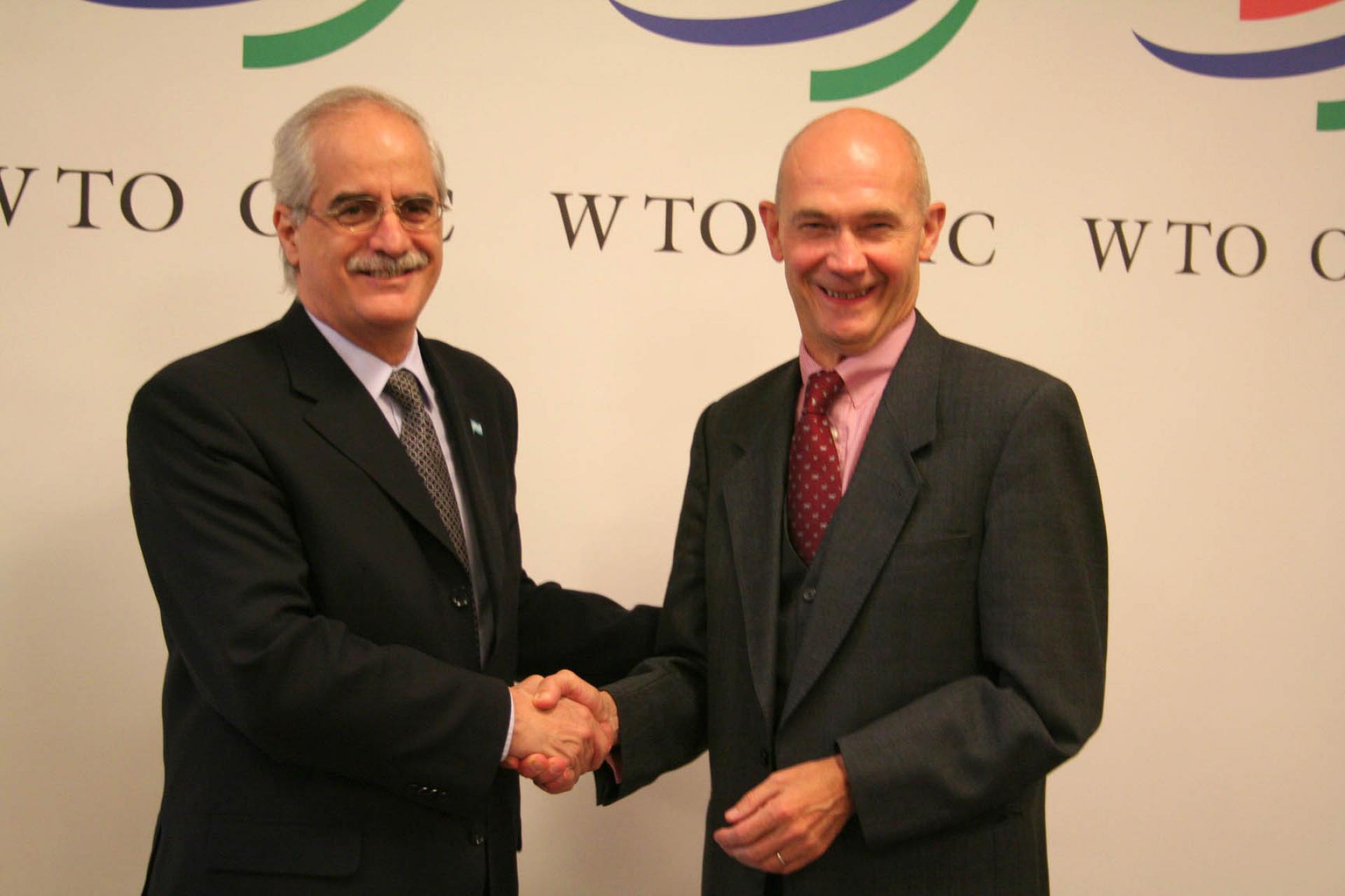 Suiza Ginebra Nov 16 de 2007. El canciller Jorge Taiana se reunió este mediodía con Pascal Lamy, director general de la OMC. Taiana reiteró la necesidad de un acuerdo equilibrado del comercio mundial