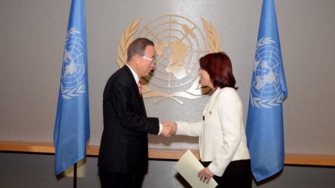 Nueva York, 23 de septiembre de 2012, el Secretario General de las Naciones Unidas, Ban Ki-moon, recibió las cartas de credenciales de la Embajadora María Cristina Perceval como Representante Permanente de la República Argentina ante las Naciones Unidas