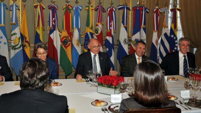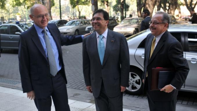 Buenos Aires, Junio 8 de 2012. El Canciller argentino, Héctor Timerman, recibió este mediodía en el Palacio San Martín a su par de la República de Costa Rica, Enrique Castillo Barrantes, quien estuvo acompañado por altas autoridades del Ministerio de Rela