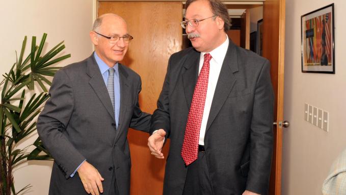 Buenos Aires, DIciembre 9 de 2011. El Canciller Héctor Timerman mantuvo un encuentro bilateral con su par de Perú, Rafael Roncagliolo, en el marco de la asunción presidencial de Cristina Fernández de Kirchner. foto Roberto Daniel Garagiola