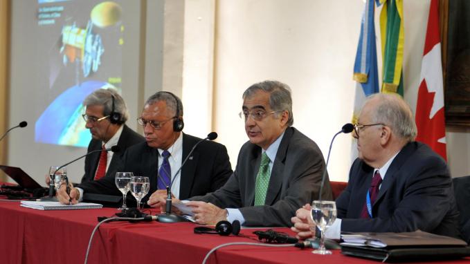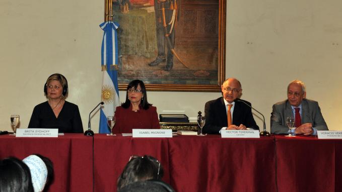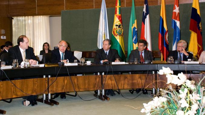 Montevideo, Uruguay, Octubre 18 de 2011. El Canciller argentino, Héctor Timerman, participó hoy en la sede de la Asociación Latinoamericana de Integración (ALADI) en Montevideo, de la Reunión “Latinoamérica y el Grupo de los 20", junto al Secretario Gene