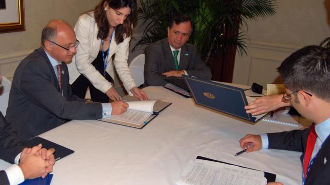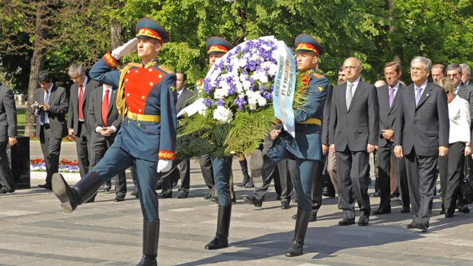 Santiago, Chile. Mayo 18 de 2011. El Presidente de ese país, Sebastián Piñera posa para la foto oficial junto al los Ministros de Relaciones Exteriores Héctor Timerman y Alfredo Moreno, ambos embajadores, Julio De Vido, y gobernadores de provincias argen