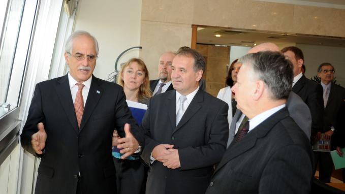 BUENOS AIRES 07/10/09, EL CANCILLER TAIANA, JUNTO A LA PRESIDENTA DE LA NACION, CRISTINA FERNANDEZ, Y EL MINISTRO DE TRABAJO, CARLOS TOMADA, EN LA 16° CONFERENCIA INTERAMERICANA DE MINISTROS DE TRABAJO DE LA OEA, HOY POR LA TARDE, EN EL PALACIO SAN MARTIN