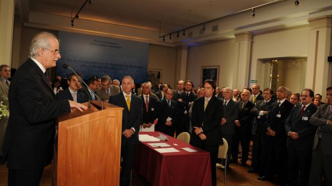 Buenos Aires, Marzo 12 de 2009. El Secretario de Relaciones Económicas Internacionales Alfredo Chiaradía y Samuel Pinheiro Guimaraes, de la Cancilleria Brasileña, junto a los Secretarios de Industria de ambos países, Ivan Ramallo y Fernando Fraguío. Arge