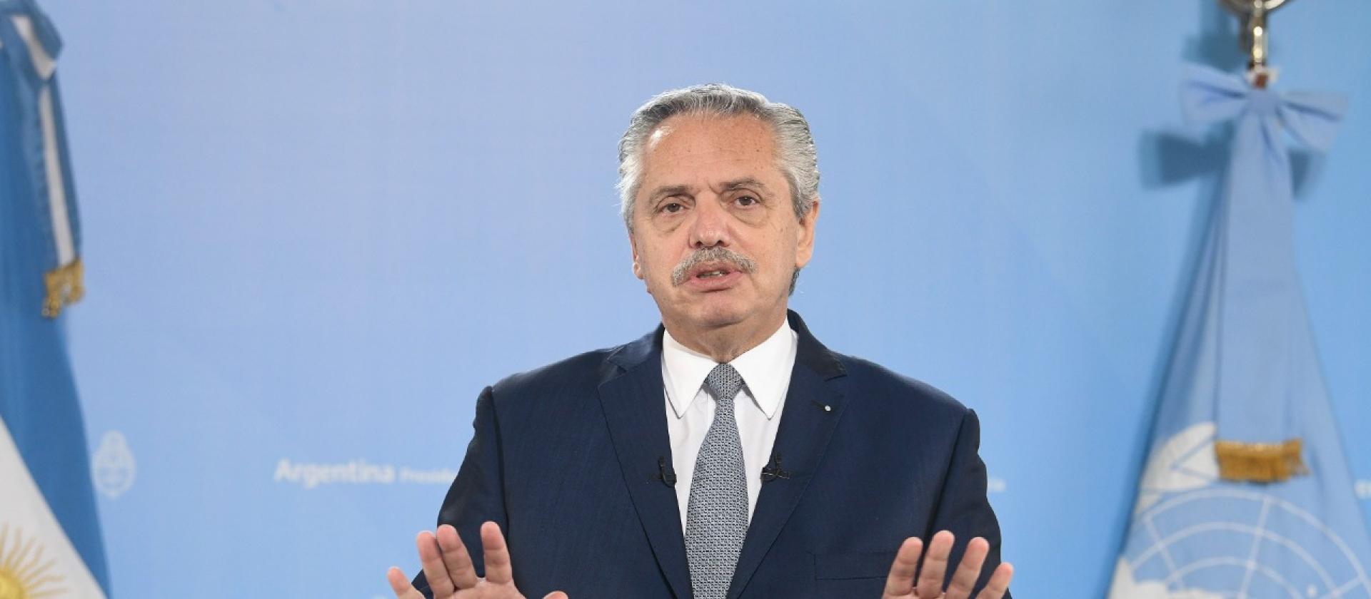 El presidente Alberto Fernández reclamó hoy la necesidad de una “reconfiguración de la arquitectura financiera global”, al participar de manera virtual de la Asamblea General de la Organización de las Naciones Unidas (ONU), donde reveló además que “está latente el riesgo de una debacle generalizada de deudas externas en los países en desarrollo”.