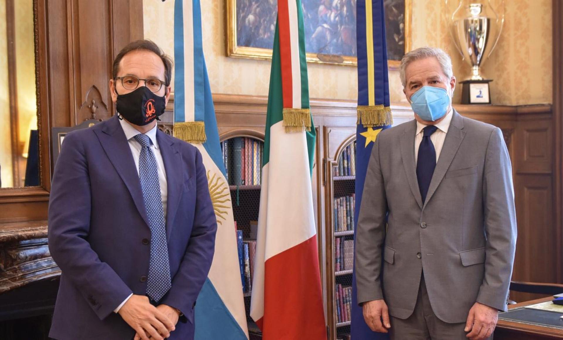 El canciller Felipe Solá se reunió hoy con el embajador de Italia en nuestro país, Giuseppe Manzo, con quien repasó la agenda política y económica bilateral en el marco de los múltiples desafíos que plantea la crisis global provocada por la pandemia COVID-19. El encuentro contó además con la presencia de los directivos de las empresas más antiguas e importantes ítalo-argentinas.