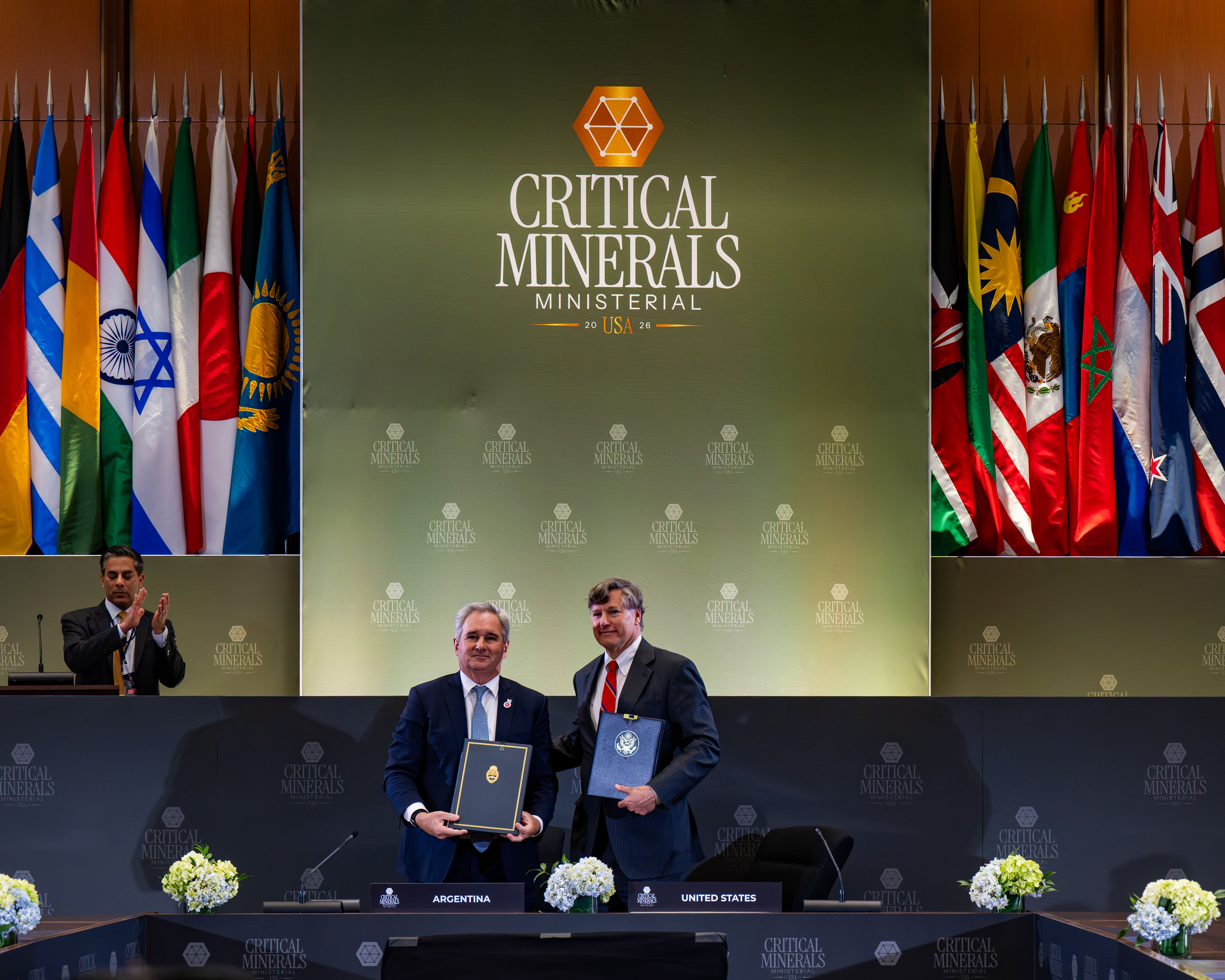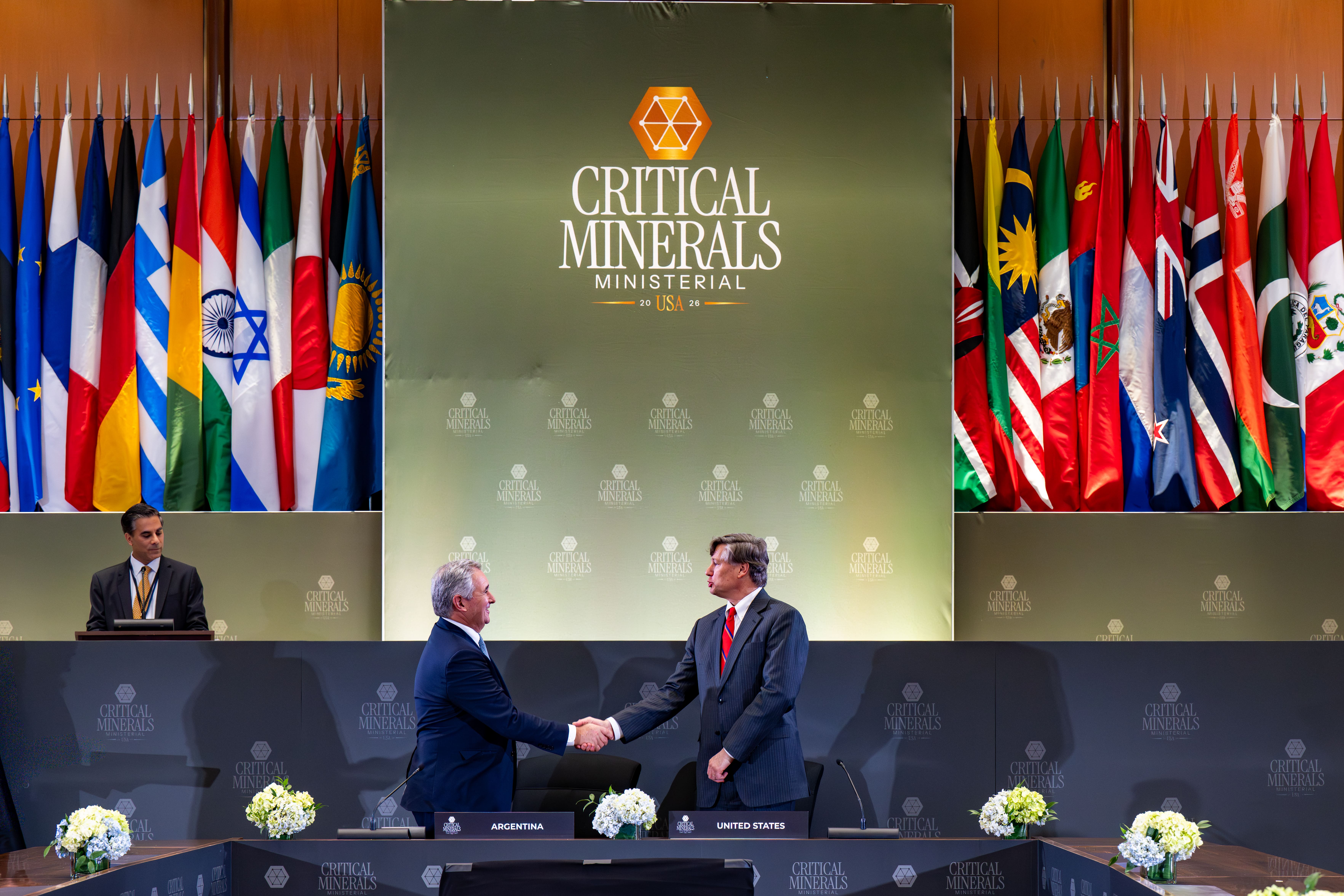 Durante la Reunión Ministerial sobre Minerales Críticos convocada por el Secretario de Estado, Marco Rubio, la República Argentina y los Estados Unidos suscribieron un Instrumento Marco para el Fortalecimiento del Suministro en Minería y Procesamiento de Minerales Críticos mediante el cual ratifican su asociación estratégica y su compromiso con el desarrollo de un suministro seguro, resiliente y competitivo.