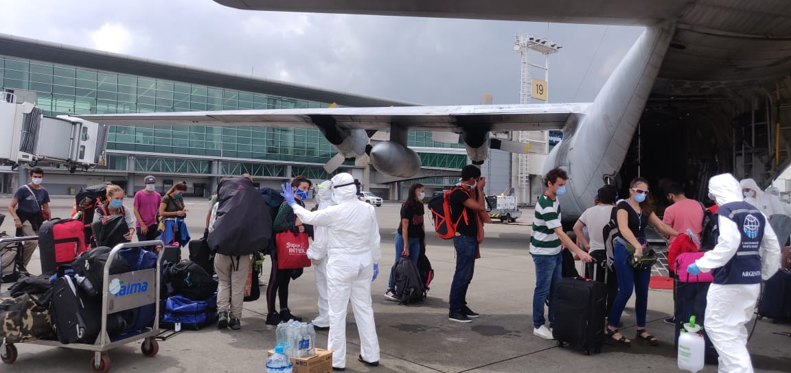 Esta noche arribarán a la base aérea de El Palomar dos aviones Hércules C-130 de la Fuerza Aérea Argentina, procedentes de Guayaquil, con 140 argentinos a bordo que, una vez en suelo nacional, deberán cumplir el aislamiento social, preventivo y obligatorio de acuerdo al protocolo sanitario de rigor para los que ingresan al país.
