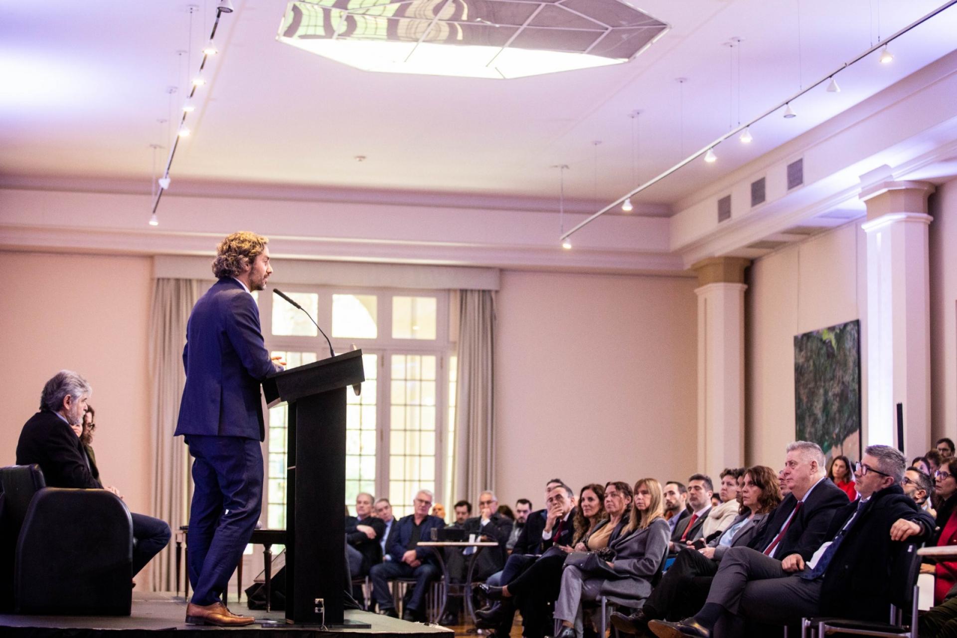 El canciller Santiago Cafiero junto a la ministra de Salud, Carla Vizzotti, y su par de Ciencia, Tecnología e Innovación, Daniel Filmus, dieron apertura a la Jornada de Innovación y Salud del Mercosur, que se realiza en el Palacio San Martín de la Ciudad de Buenos Aires en el marco del X Foro Empresarial del Mercosur.