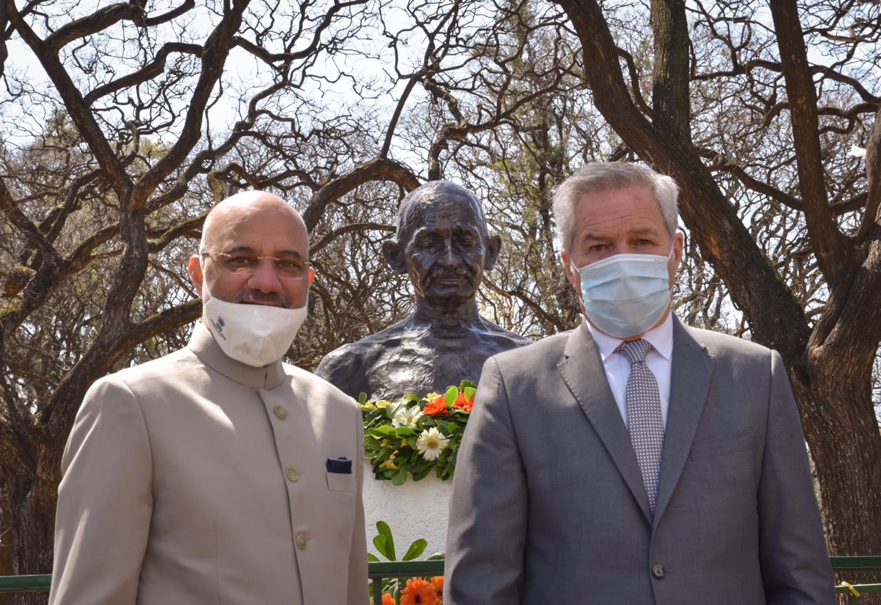 Durante la ceremonia el ministro y el embajador Dinesh Bhatia realizaron una ofrenda floral ante el busto de Mahatma Gandhi en la Plaza Sicilia de la ciudad de Buenos Aires.