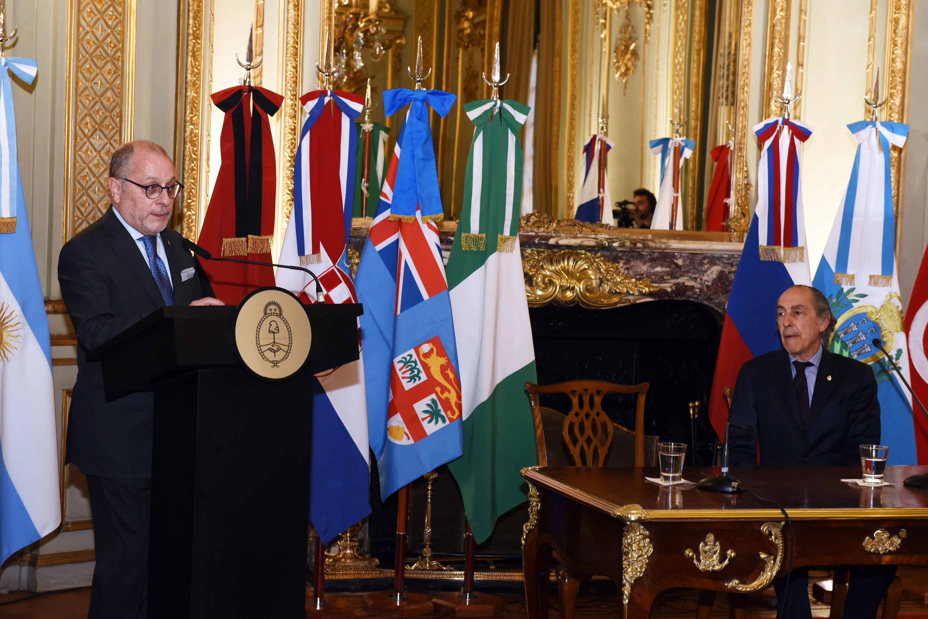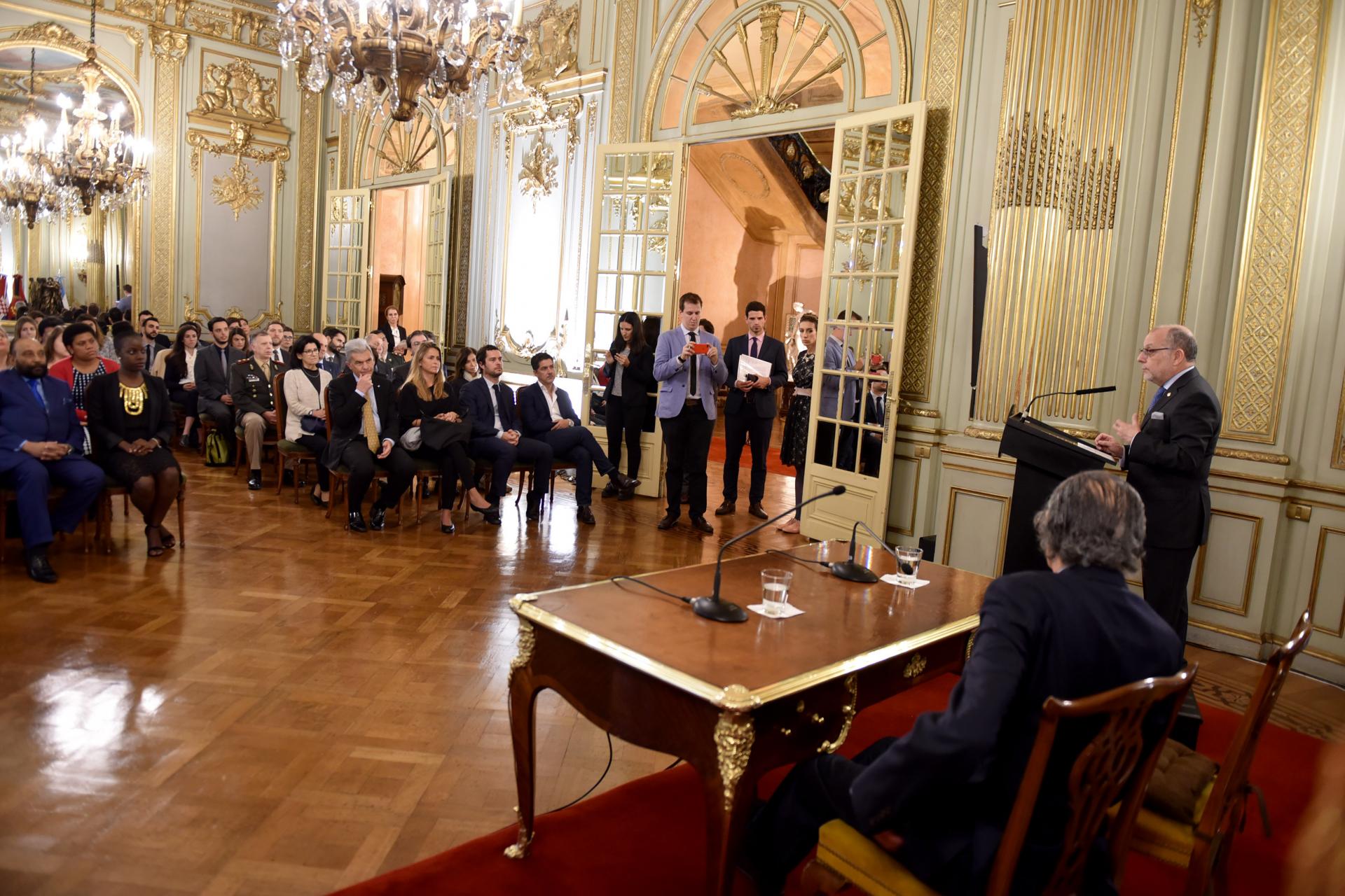 El canciller Jorge Faurie presidió hoy la ceremonia de cierre del Curso para Jóvenes Diplomáticos extranjeros del Instituto del Servicio Exterior de la Nación, que se realizó en esta tarde en el Salón Dorado del Palacio San Martín.