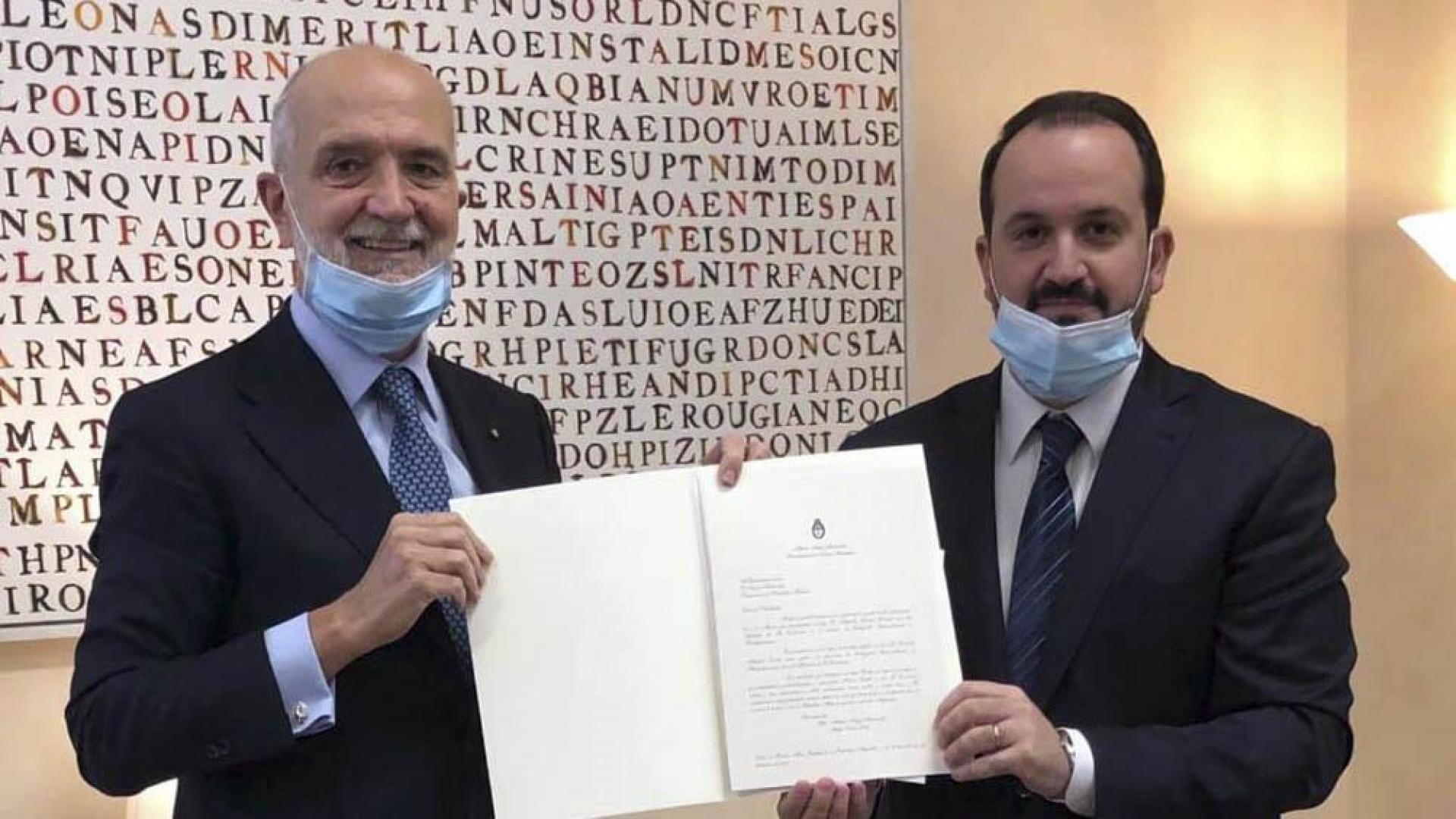 Carlés comenzó su presentación formal ante el jefe del Protocolo Diplomático de la República Italiana, Inigo Lambertini, y aproximadamente dentro de un mes se reunirá con el presidente Mattarella, en el Palacio del Quirinal.