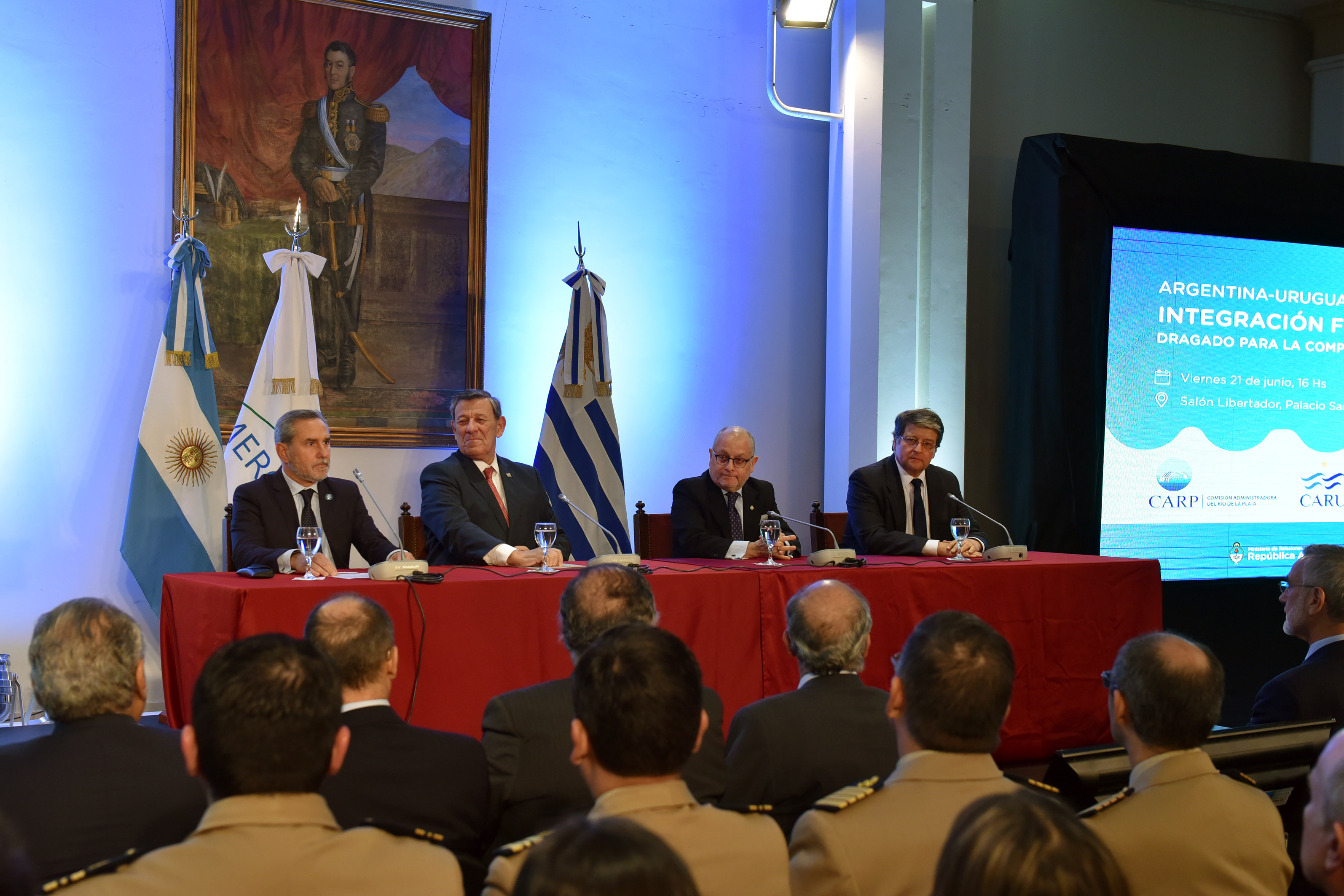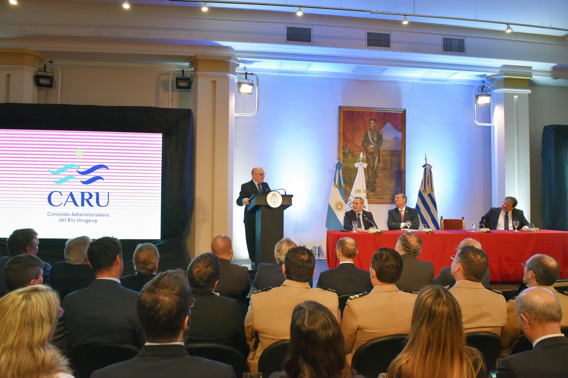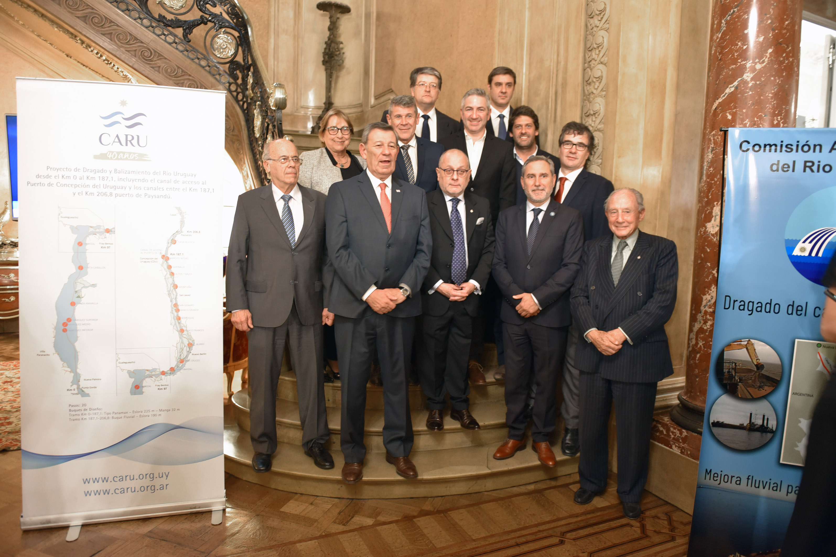 El acto se realizó para anunciar la conclusión de las obras de dragado del canal Martin García a 34 pies en fondos blandos y 38 pies en fondos duros (rocas) a los largo de sus 104 kms de longitud, así como la reciente conclusión del dragado y balizamiento del Río Uruguay a 25 pies en 187 kms de longitud, que ha resultado en la rehabilitación de los puertos de Concepción del Uruguay y de Paysandú.