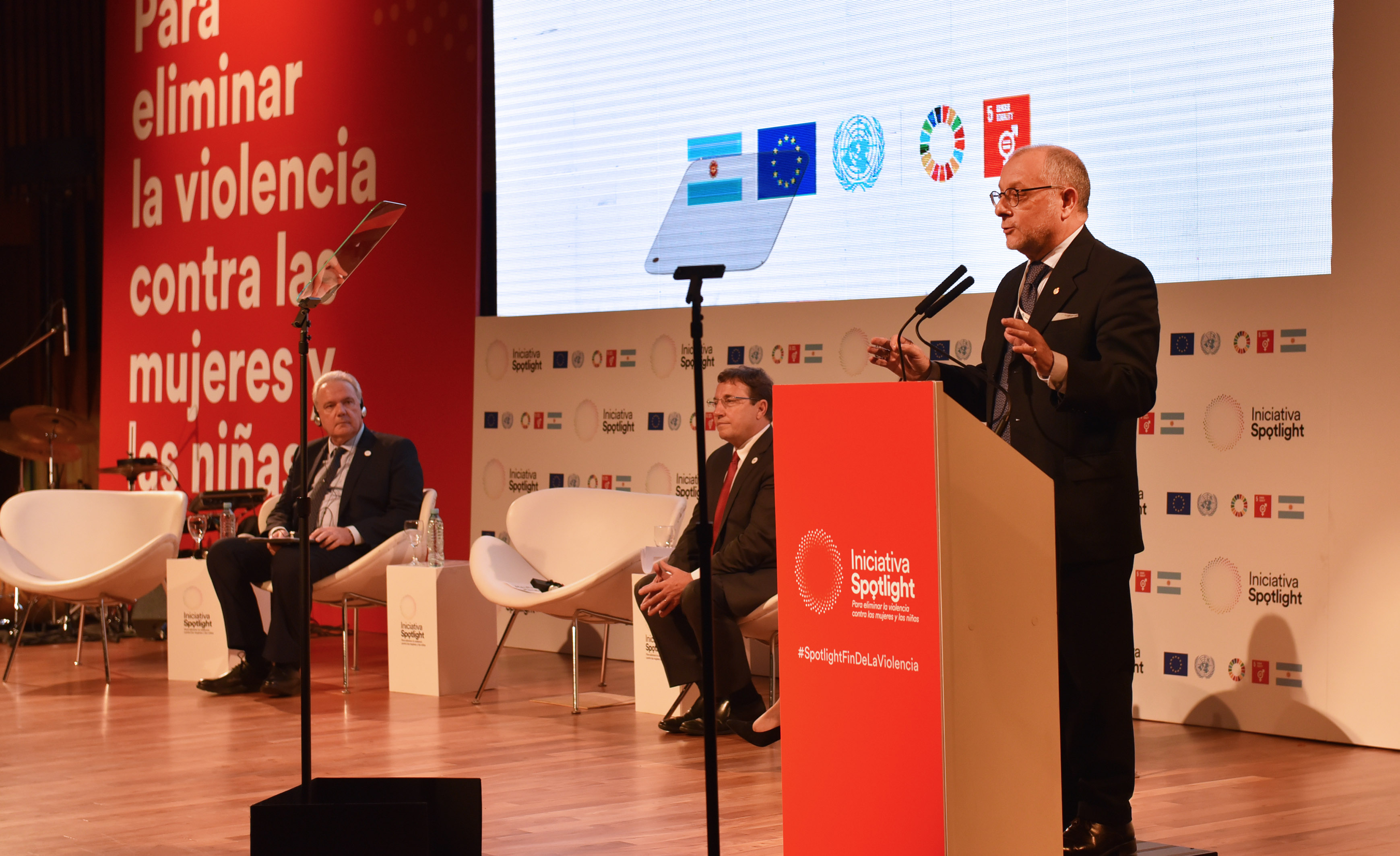Faurie explicó esta tarde que la “Iniciativa Spotlight” consiste en “una alianza entre la Unión Europea y las Naciones Unidas que tiene como objetivo, desarrollar junto al Estado argentino, la prevención, atención y sanción de todos los tipos de violencia contra las mujeres y las niñas, y pondrá el foco en su manifestación más extrema: el femicidio” .