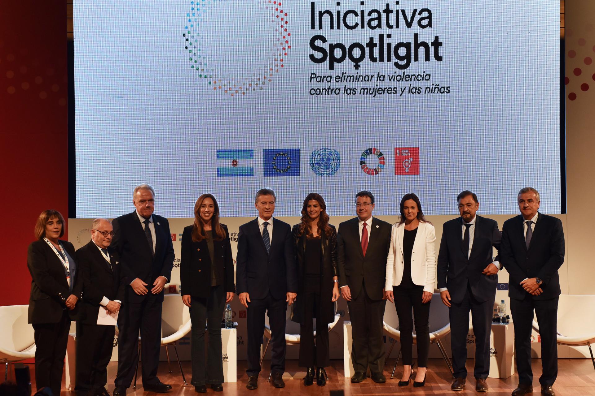 El canciller Jorge Faurie acompañó al presidente Mauricio Macri en la presentación de la “Iniciativa Spotlight”, que se realizó hoy en el CCK.