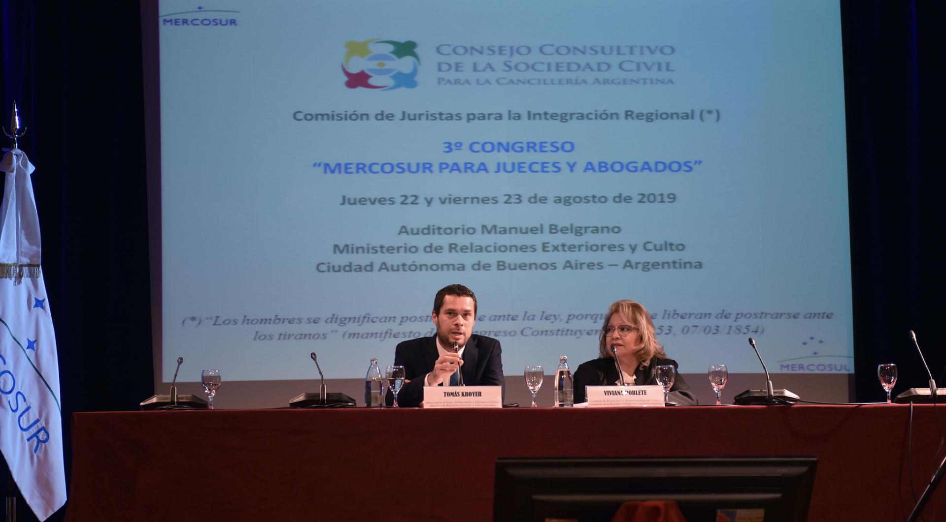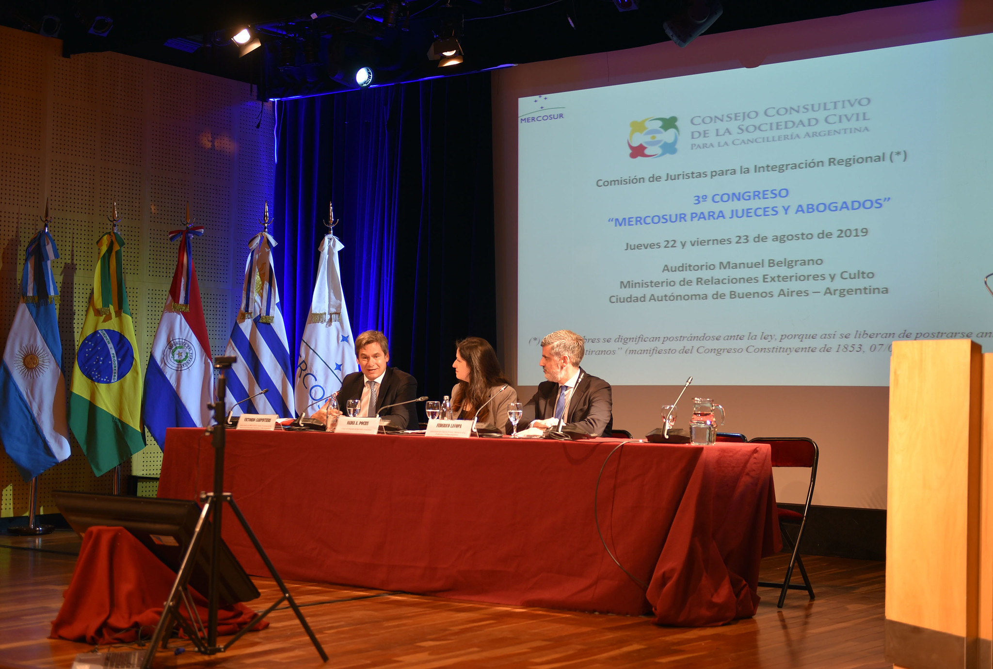 Entre ayer y hoy se celebró en el Auditorio Manuel Belgrano el III CONGRESO MERCOSUR PARA JUECES Y ABOGADOS organizado por el Consejo Consultivo de la Sociedad Civil para la Cancillería Argentina.
