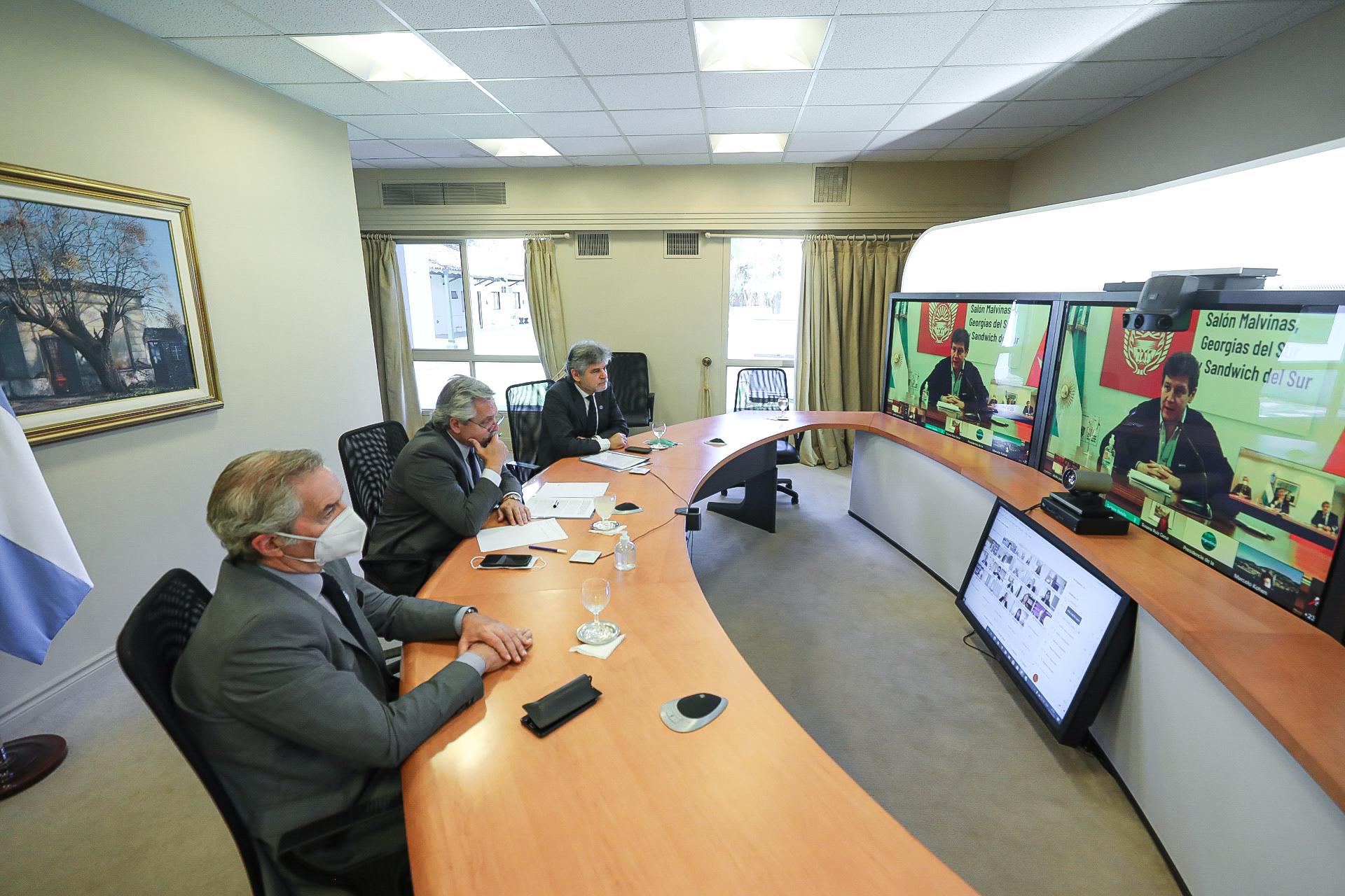 El Presidente Alberto Fernández encabezó hoy, en el 200° aniversario del izamiento de la bandera argentina en Malvinas, la primera reunión del Consejo Nacional de Asuntos Relativos a las Islas Malvinas, Georgias del Sur, Sandwich del Sur y los Espacios Marítimos e Insulares correspondientes, que integra el propio jefe de Estado, junto al canciller Felipe Solá, el secretario Daniel Filmus y un amplio abanico de representantes de las principales fuerzas políticas, del ámbito académico y científico, del campo del derecho internacional, y de los ex combatientes de Malvinas, y que cuenta como Miembro Honorario al Premio Nobel de la Paz, Adolfo Pérez Esquivel.