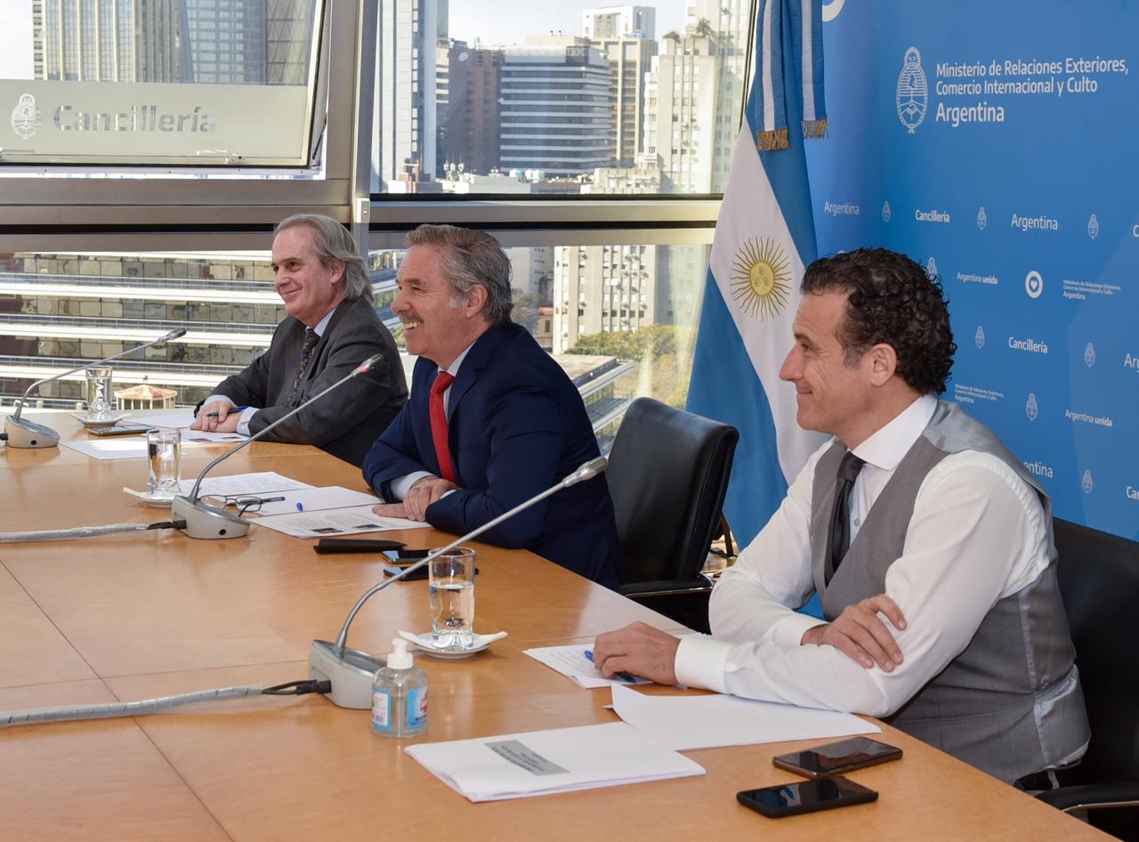 “Llevamos 8 meses de gobierno y 5 fueron con pandemia. El Covid-19 provocó una enorme crisis en toda la sociedad, y las pequeñas y medianas empresas no son la excepción. Como toda crisis no sabemos cuándo va a terminar, pero sí es importante poder impulsar políticas para la postpandemia. En Argentina tenemos PyMES que tienen una base sólida en la cultura del trabajo y con un desarrollo relativo de tecnología. Pero también poseemos las micro PyMES, con 1 ó 2 empleados, que se han visto muy perjudicadas por la pandemia, sobre todo, en las actividades que no fueron consideradas esenciales”, señaló Solá quien estuvo acompañado por el Secretario de Relaciones Exteriores Pablo Tettamanti y el Jefe de Gabinete de la Cancillería, Guillermo Justo Chaves.