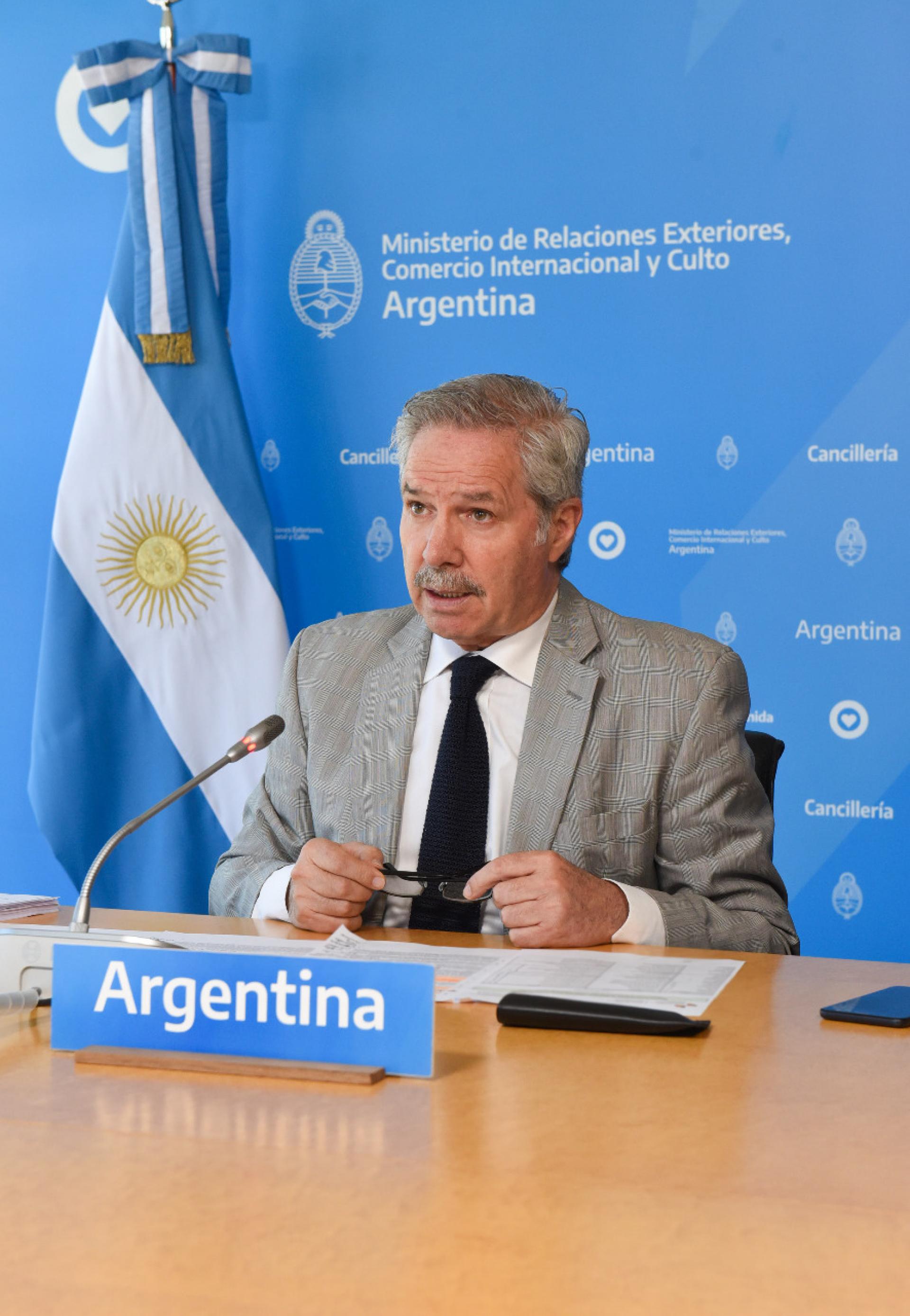 El canciller Felipe Solá participó hoy de la reunión de cancilleres iberoamericanos, y allí reafirmó la posición argentina sobre la integración regional y la necesidad de fortalecer el multilateralismo y la cooperación global, al tiempo que recordó la figura de Diego Maradona como “un talento surgido de la adversidad que supo defender a los desposeídos”.