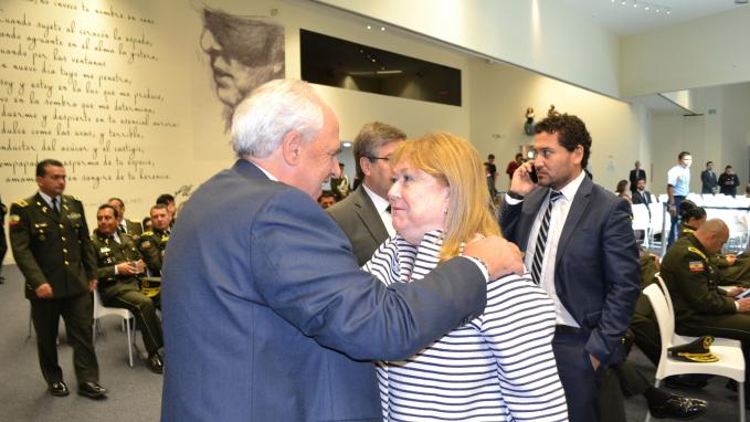 La canciller Susana Malcorra saluda al Secretario General de UNASUR, Ernesto Samper mientras participa de la Reunión Ex