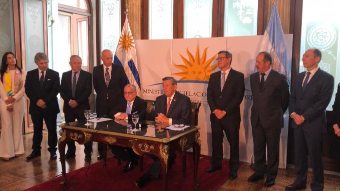 El Canciller Jorge Faurie y su par de Uruguay, Rodolfo Nin Novoa, suscribieron un Acuerdo Marco entre ambos países para...