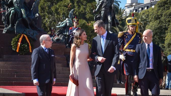 El Canciller Jorge Faurie acompañó esta mañana a los Reyes de España, Felipe VI y Letizia, durante la ofrenda floral al...