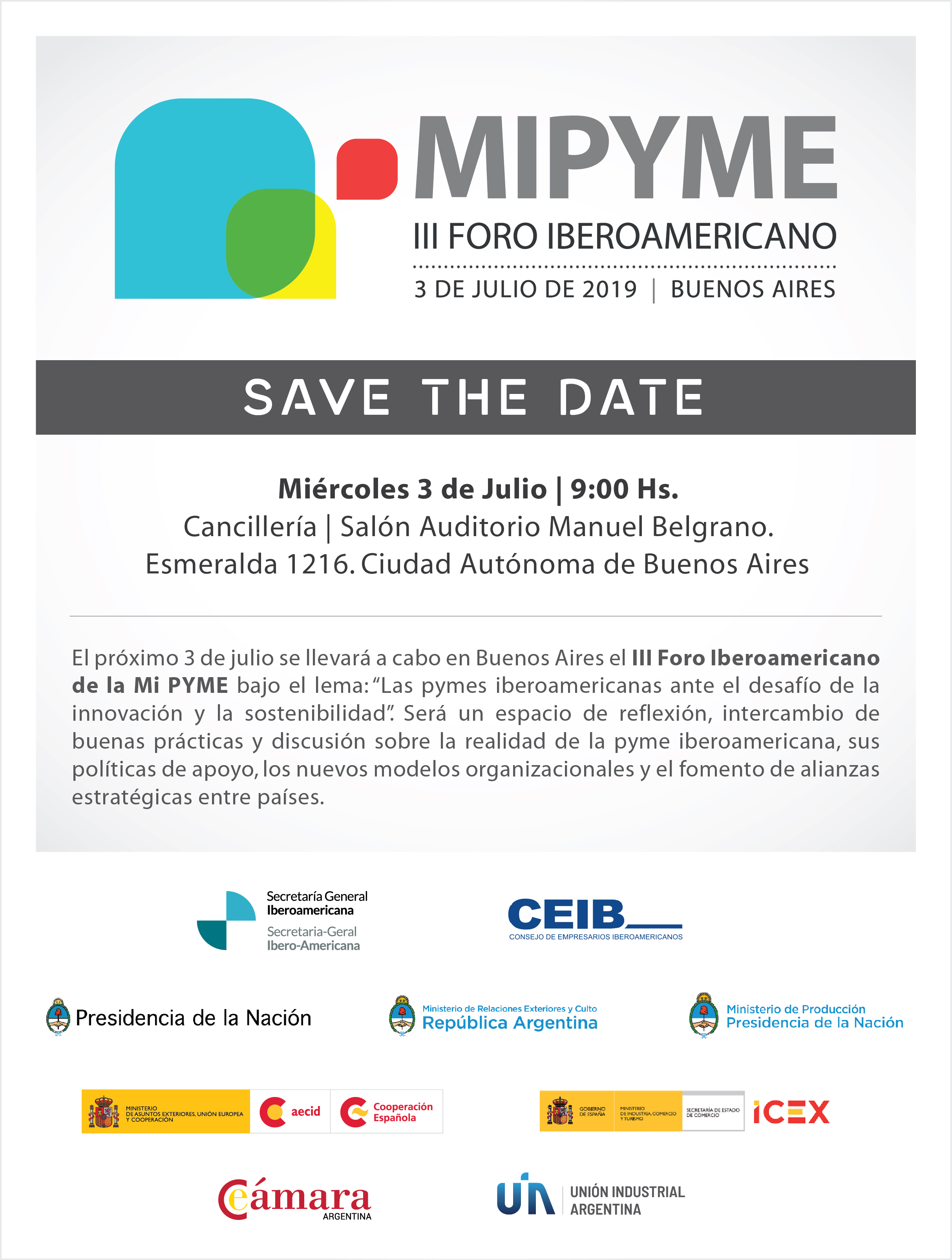 El próximo 3 de julio se llevará a cabo el lll Foro Iberoamericano de la Mi PYME bajo el lema: "Las pymes iberoamericanas ante el desafío de la innovación y la sostenibilidad", que tendrá lugar en el Auditorio Manuel Belgrano de esta Cancillería a partir de las 08:45hs , Esmeralda 1216, CABA.