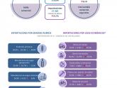 - En cuanto a las importaciones, las mermas más significativas se dieron en las compras de porotos de soja (−US$ 1.654 millones), partes de teléfonos y de aparatos de emisión (−US$ 792 millones) y gas natural licuado (−US$ 783 millones); mientras que los crecimientos más destacados fueron en partes de turbinas de gas (US$ 108 millones) y vehículos para transporte de personas (US$ 92 millones).