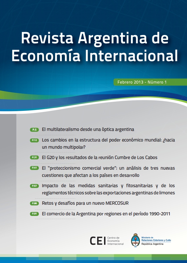 Primera edición de la Revista Argentina de Economía Internacional (RAEI) del CEI, que se centra principalmente en cuestiones referidas al comercio internacional y las negociaciones comerciales.