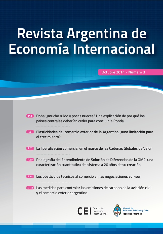 Tercera edición de la Revista Argentina de Economía Internacional (RAEI) del CEI, que se centra principalmente en cuestiones referidas al comercio internacional y las negociaciones comerciales.