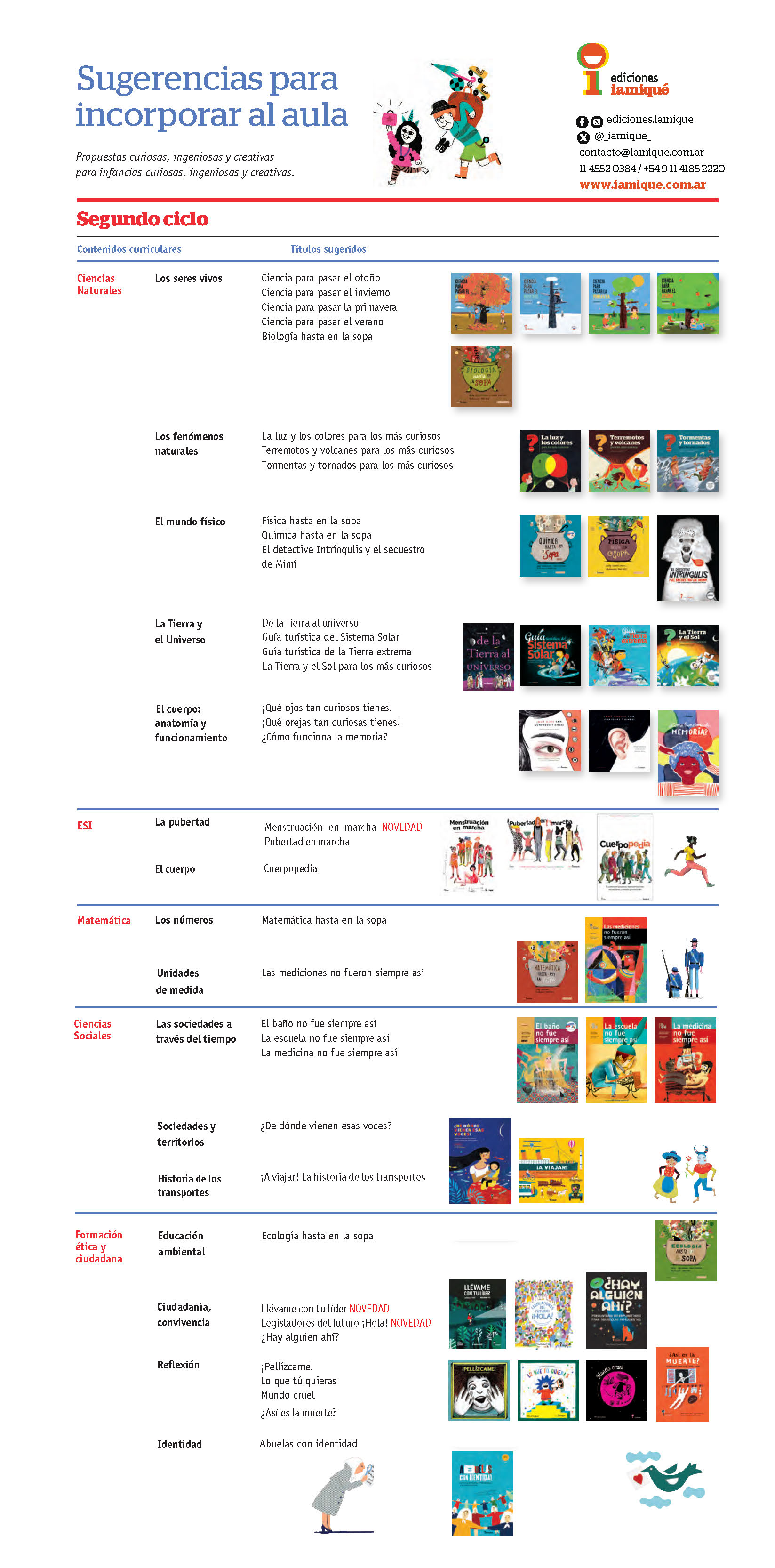 Fundada y dirigida por dos científicas, ediciones iamiqué produce exclusivamente libros informativos para niños y niñas. Con más de 85 títulos publicados, muchos premios y traducciones a varios idiomas, goza de un lugar de mucho prestigio en el mundo de la literatura infantil en el que se destaca la originalidad y la excelencia de sus contenidos. Su catálogo explora temas muy diversos -desde las ciencias naturales hasta la filosofía, pasando por la historia, la ciudadanía y la educación sexual- y presenta autores formados en cada una de las áreas abordadas. Nominada tres veces al gran premio de Bologna BOP como mejor editorial LIJ de América Latina.